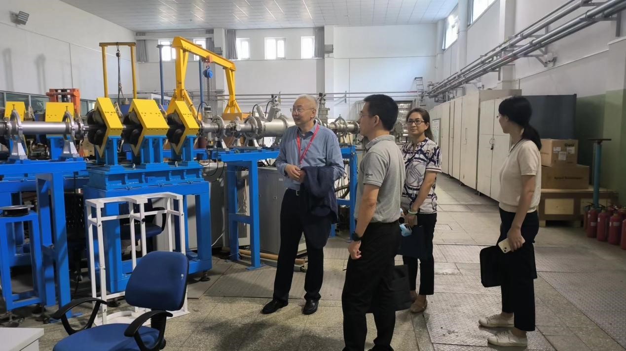 会后,北京大学科研部范少锋主任和物理学院王宇钢教授陪同科技部核聚变中心钱小勇副主任一行来到核物理与核技术国家重点实验室,重点参观了项目实施过程中所需的重要加速器设备。钱小勇对我校基于加速器的核能材料研究和国际影响力予以肯定,并表示未来将继续大力支持我校聚变材料研究的工作。王宇钢教授表示感谢科技部核聚变中心对本领域的长期支持,并表示将持续加大投入,全力以赴,不负国家重托,为我国核聚变研究继续贡献力量。