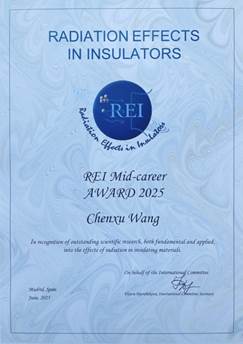 2025年6月8—13日,第22届国际绝缘材料辐照效应会议(International Conference on Radiation Effects in Insulators, REI)在西班牙马德里举行。会议期间,北京大学物理学院重离子物理研究所、核物理与核技术全国重点实验室王晨旭助理教授因“在绝缘材料辐照效应基础研究与应用研究中所作出的科学贡献”(in recognition of outstanding scientific research, both fundamental and applied, into the effects of radiation in insulating materials),被授予本年度REI职业中期奖(REI Mid-career Award),从而成为首位获此殊荣的中国学者。